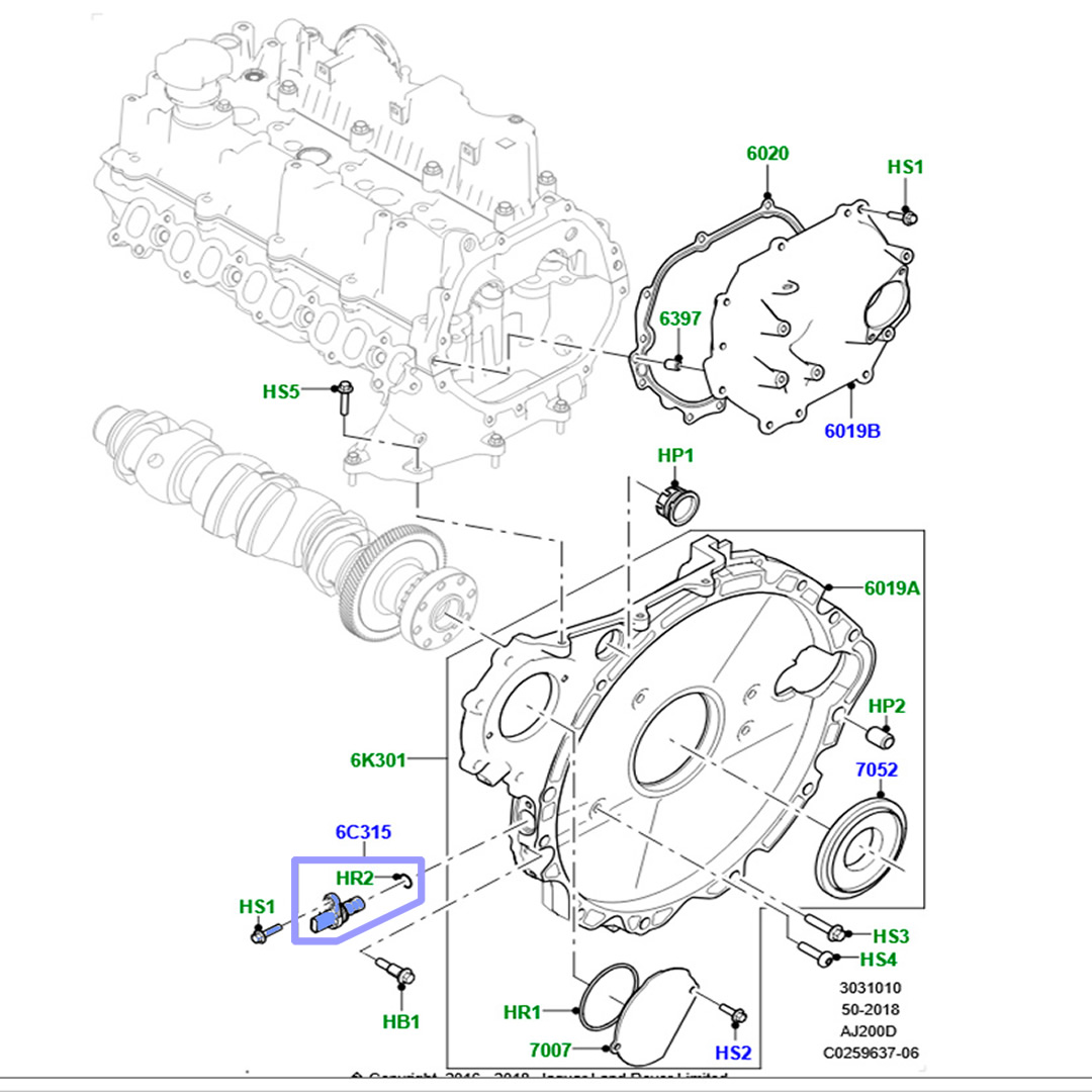 LAND ROVER CRANKSHAFT POSITION SENSOR DISCOVERY 2017 ON DISCOVERY SPORT 2016 ON DEFENDER 2020 ON RANGE ROVER EVOQUE 2019 ON RANGE ROVER 2018 -2021 RANGE ROVER EVOQUE 2016-2018 RANGE ROVER SPORT 2017-2022 RANGE ROVER VELAR 2017 ON LR126181